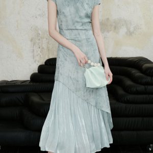 New Chinese light national style modified blue dress women