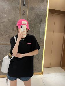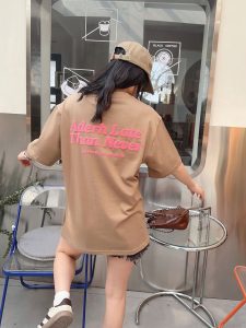 A loose-fitting and nimble half-sleeved top is versatile in Harajuku style
